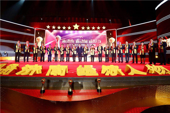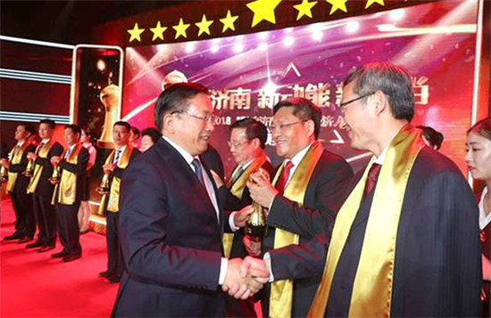 在颁奖典礼现场,刘家昌总经理与其他获奖企业家共同宣读《泉城宣言》,发出创业再出发的动员令,为建设“大强美富通”现代化国际大都市努力奋斗!